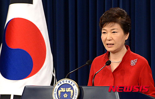 - 【서울=뉴시스】전진환 기자 = 박근혜 대통령이 6일 오전 청와대 춘추관에서 대국민 담화를 발표하고 있다. 2015.08.06. park7691@newsis.com 2015-08-06